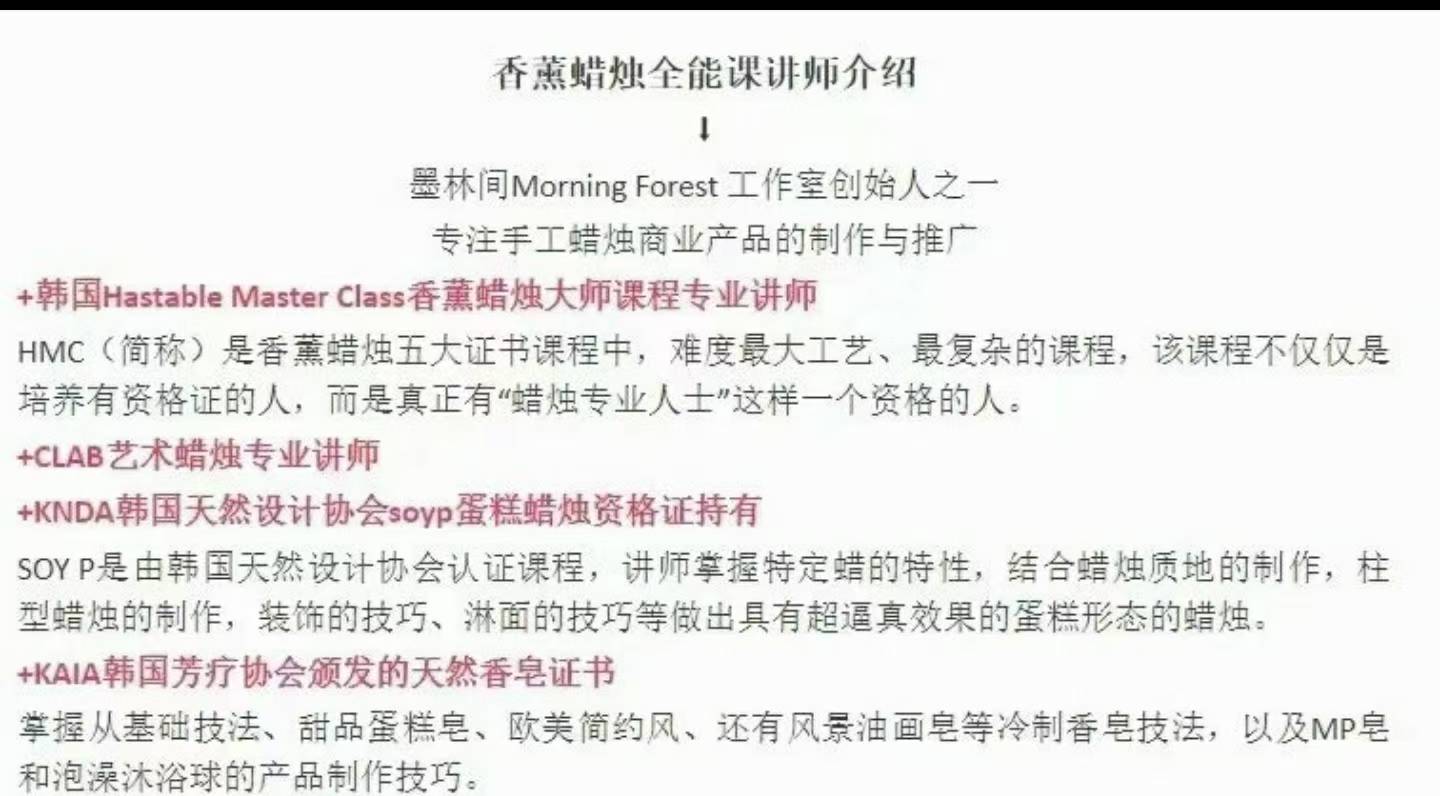本程课是由 [墨林间MORNING FOREST] 工作室针零对基础及进阶求需的手作爱好设者计,整日合韩、国内、欧美香蜡薰烛设计技巧,研发的薰香蜡烛上线系统课程。